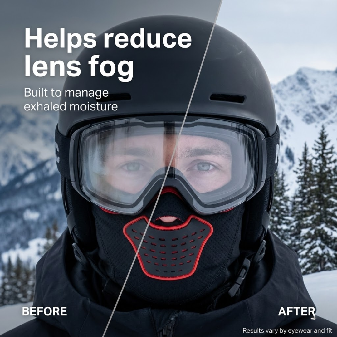Nordaire is designed for warmth and weather protection. It is not medical PPE. Fog performance varies by eyewear and face shape, especially with glasses only. Always confirm that your vision and peripheral view are unobstructed before riding or operating equipment. If the fit feels too tight, reposition it or discontinue use. For best comfort, avoid using it in mild temperatures during high exertion if you tend to overheat.