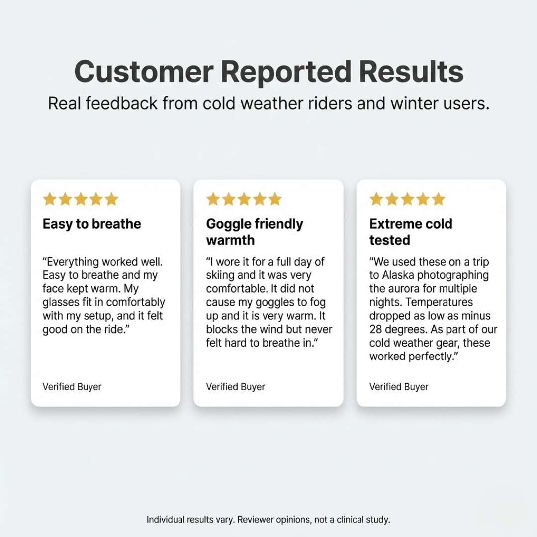 Most winter face coverings can shift depending on head shape, helmet fit, and how the chin area is seated. In customer feedback, some people report the face section riding up, especially when looking down or moving the mouth.
