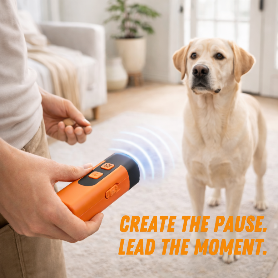 "A training tool should reduce stress, not add to it. Use a brief cue to interrupt the moment, stop the instant your dog settles, then reinforce calm behavior right away. If your dog shows unusual fear or distress, discontinue use. If your dog has hearing concerns or a history of seizures, consult your veterinarian before using any ultrasonic style training aid.”